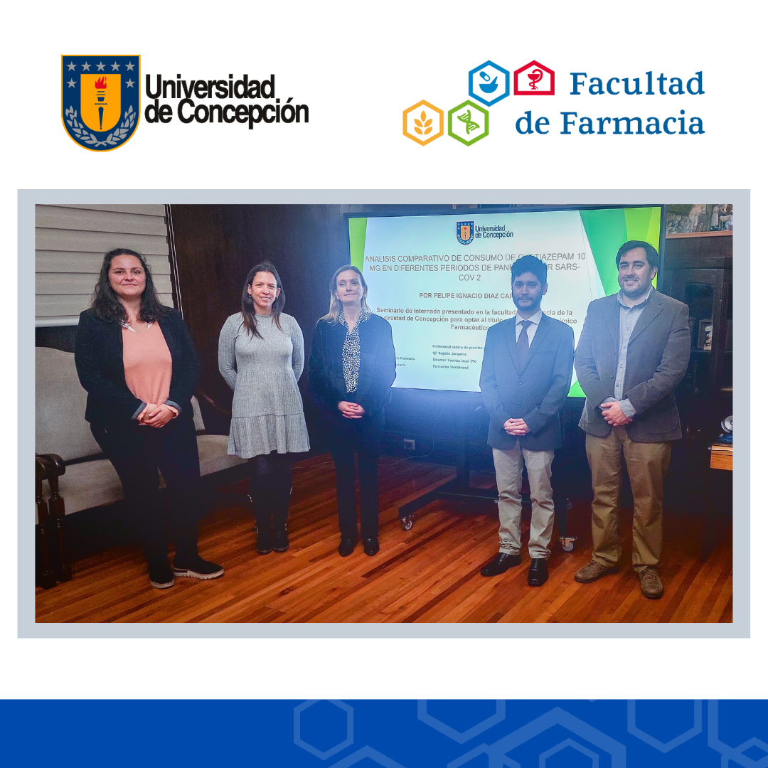 Felipe recibió su título profesional de Químico Farmacéutico de la Universidad de Concepción, luego de presentar y defender su Examen de Título, el cual se denominó «Análisis comparativo de consumo de clotiazepam 10 mg en diferentes periodos de pandemia por SARS-COV 2».