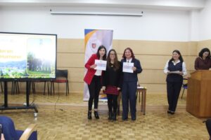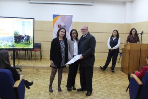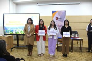 La Decana de la Facultad de Farmacia Dra. Claudia Mardones Peña, entregó los certificados a Daniela Contreras Elgueta, Magdalena Astudillo Hernández y Jordana Acuña Monsalve.