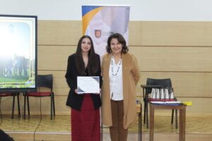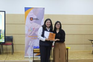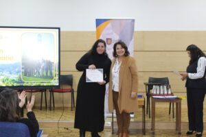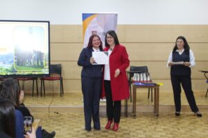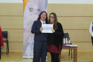 A continuación, la profesora Alide Salazar Molina hizo entrega del reconocimiento a Alumna Integral a Luciana Morales Campos, por su destacada trayectoria que combinó excelencia académica con un fuerte compromiso, participación activa y sólidos valores personales.