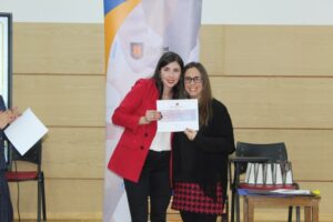 En primer lugar, fue reconocida como Docente Destacada la profesora Lorena Meléndez Illanez, por su cercanía, entrega y permanente apoyo académico.
