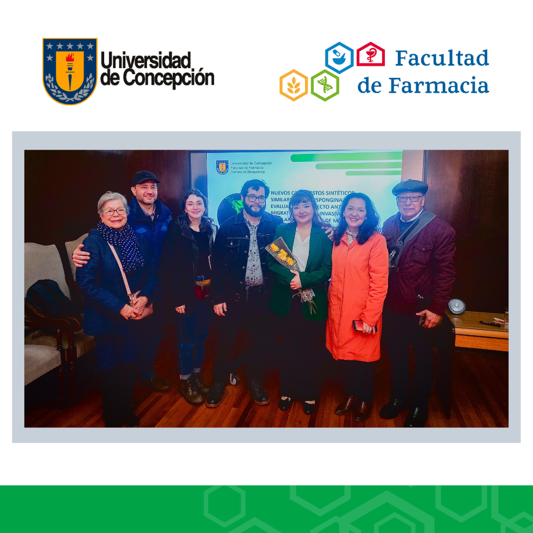 Paula recibió su título profesional de Bioquímico de la Universidad de Concepción, luego de presentar y defender su Examen de Título, el cual se denominó «Nuevos compuestos sintéticos similares a Xestospongina B: evaluación del efecto anti-migratorio y anti-invasivo en líneas celulares de cáncer de mama».